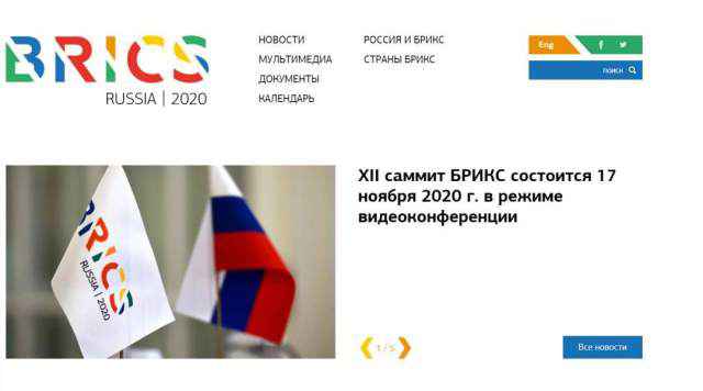 10月5日,作为金砖国家轮值主席国的俄罗斯在官网上发布公告,2020金砖国家峰会将于11月17日以视频方式举行。公告指出,2020年金砖峰会的主题为维护全球稳定、共同安全和创新增长的金砖国家伙伴关系。俄罗斯作为轮值主席国,将致力于推动金砖国家人民生活标准和质量的改善。俄罗斯总统顾问、2020金砖峰会组委会秘书安东·科比亚科夫表示,尽管新冠疫情在全球蔓延,金砖国家仍然在开展工作。自2020年1月以来,已经组织了包括视频会议在内的60多场活动。
